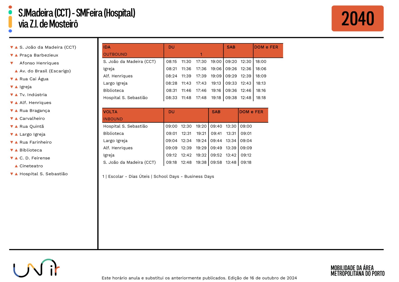 2040 - SJMadeira (CCT) - SMFeira (Hospital) via Z.I. de Mosteirô