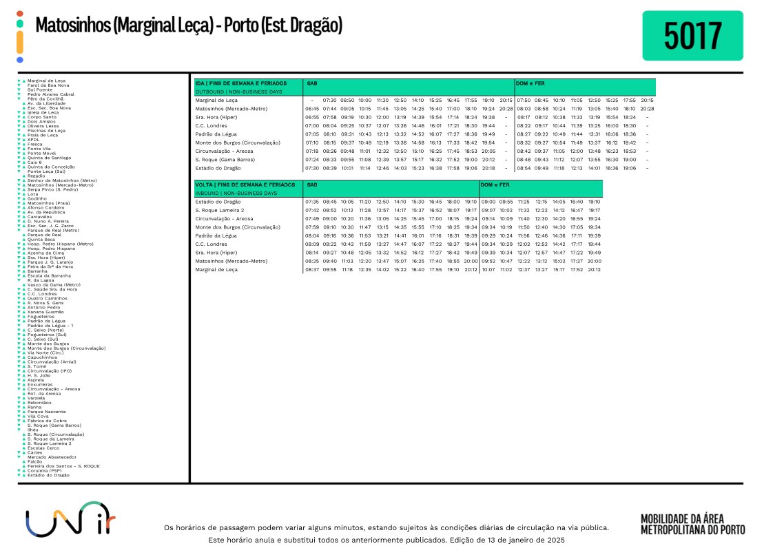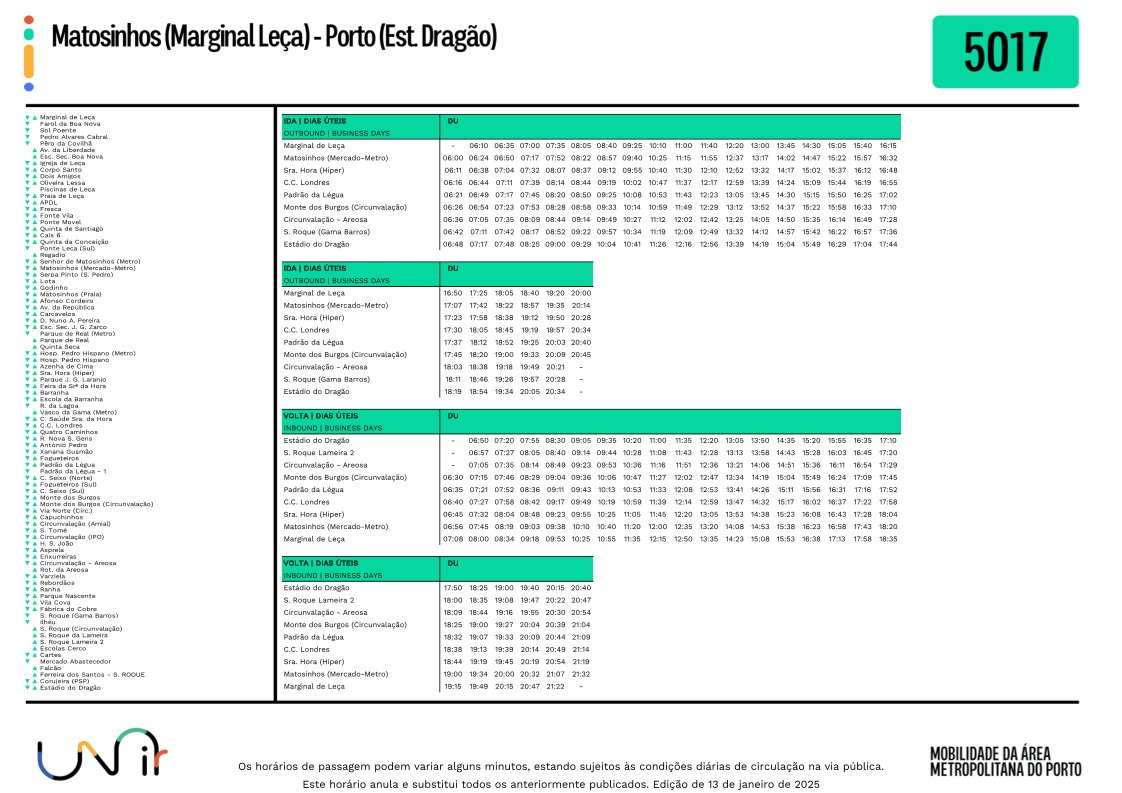 5017 - Matosinhos (Marginal Leça) - Porto (Estádio do Dragão)