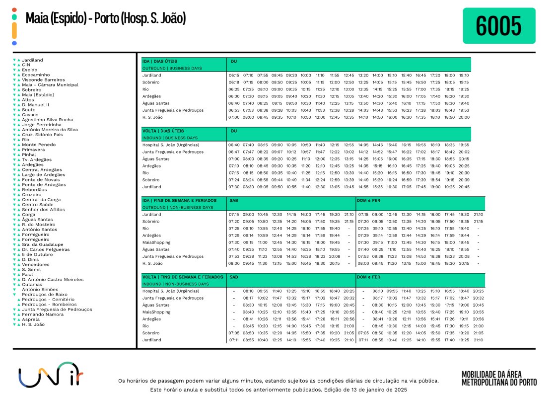 6005 - Maia (Espido) - Porto (Polo Univ/H. S. João) via Maiashopping